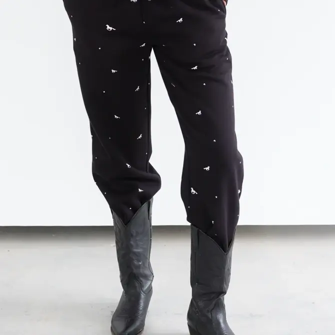 Covered in hand-drawn horses and tiny abstract hearts, this Core Hoodie is as playful as it is cozy. Made from signature cotton-poly fleece blend, it has a roomy fit, front kangaroo pocket, and a cozy hood. Pair with the matching Oversized Joggers for the full Horse Girls set.