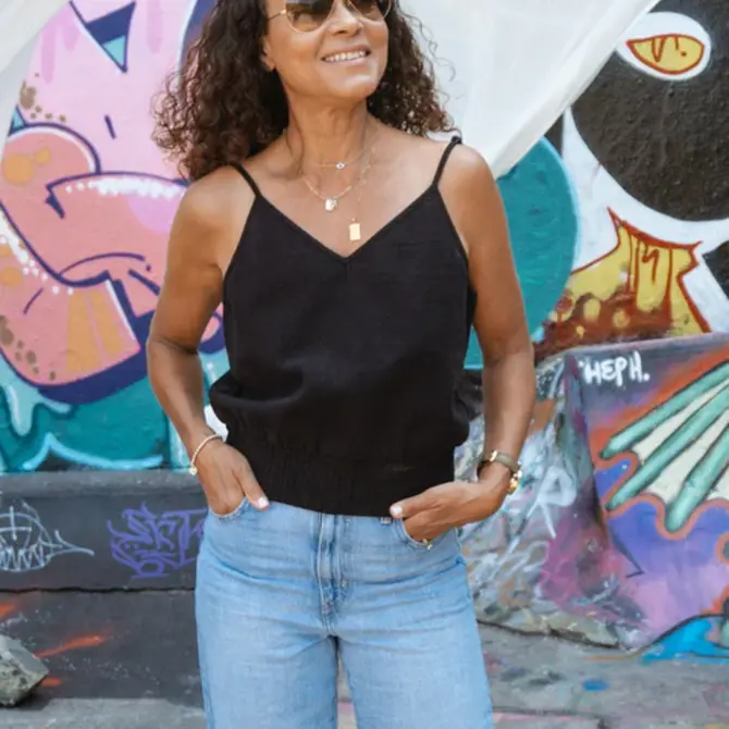 Slim - Streamlined to fit close to the body. Included extra length for the tall gals, but feel free to roll that hem if you need to or if you're going for a more cropped look