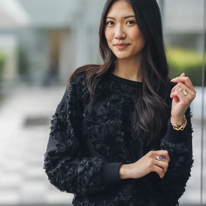 3D Flower overlay on front & sleeves