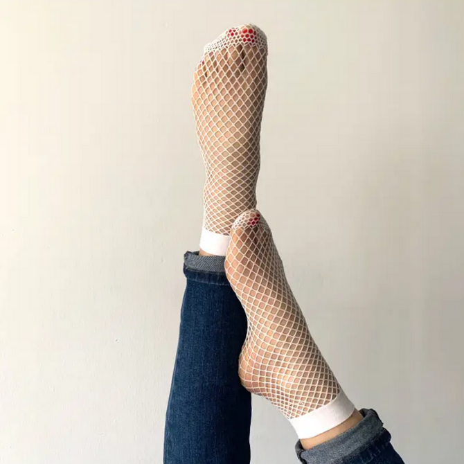 Checker flower ankle socks. Made of 90% cotton and 10% spandex.