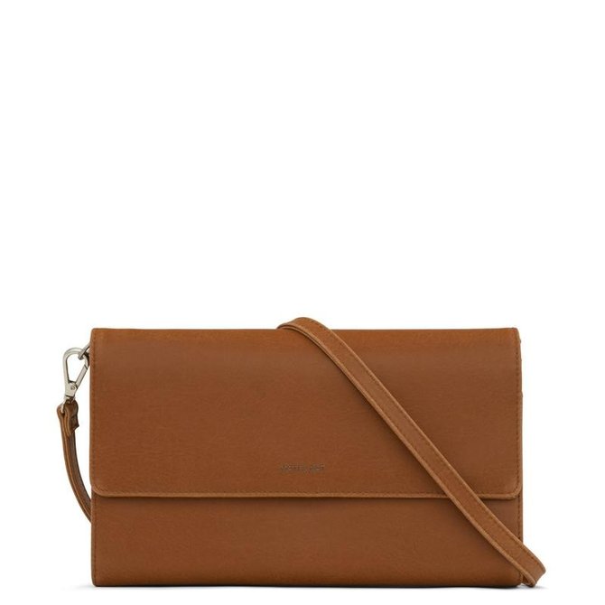 Triple compartment, expandable crossbody bag with flap closure. Comes with a detachable and adjustable shoulder strap.