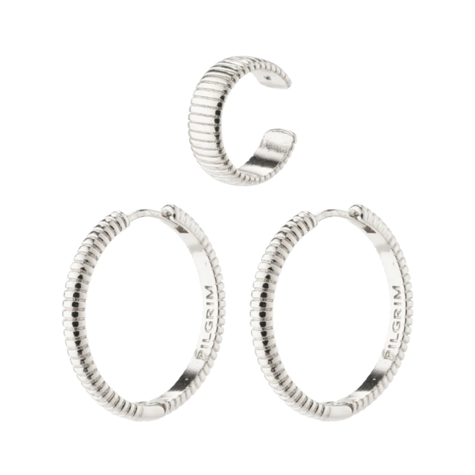 Gold- Silver-plated 2-in-1 set of Creole earrings and ear cuff