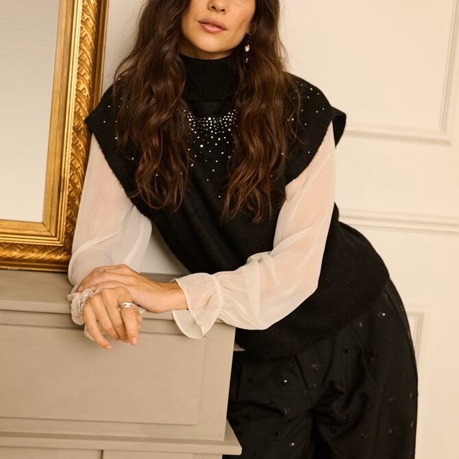 Double breasted sequinned blazer with a piqued lapel, covered buttons and full lining, plus pockets