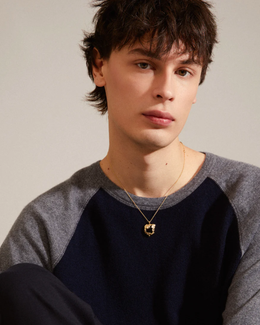 Gold-plated necklace with a black onyx pendant and a handcrafted feel