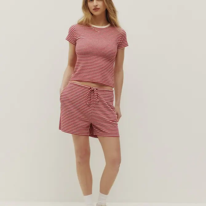 The Sienna Stripe Top features a refined striped design with a soft hand feel and subtle stretch. Designed with a flattering fit and lightweight drape, it’s a versatile piece worn on its own or styled as a coordinated set.