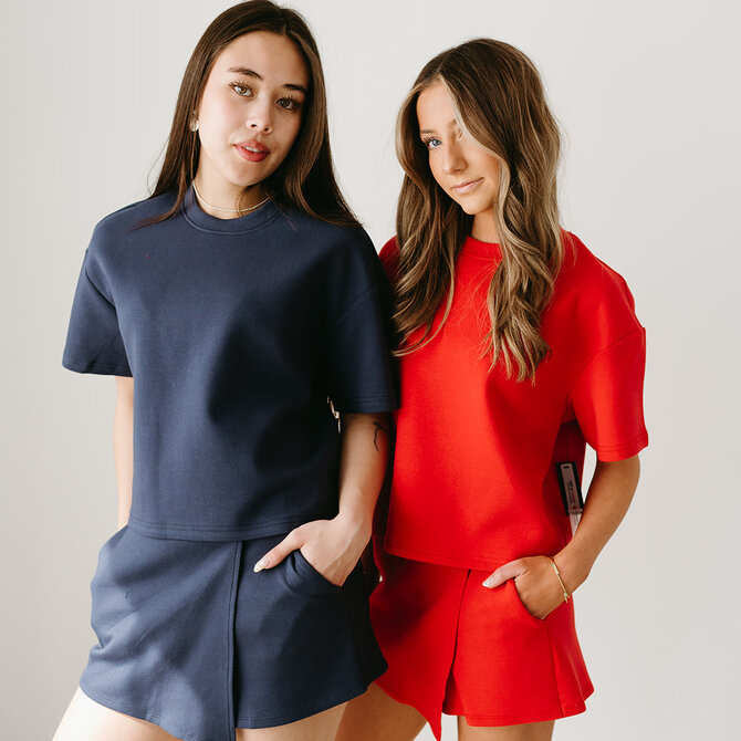 Indulge in the luxuriously soft Tess Top, with short sleeves and a boxy fit. This top is ultra comfortable and moves great with you through all your daily adventures. Pair with the matching joggers or skort for an easy coordinated look.