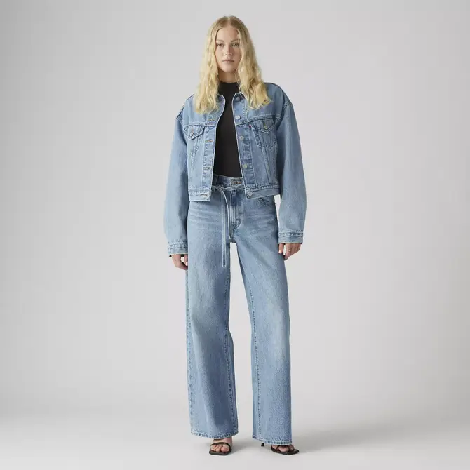 Barrel leg jeans in a medium-light indigo wash