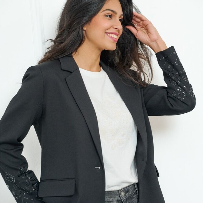 Shell: 70% Polyester - 28% Viscose - 2% Spandex // Lining: 100% Polyester